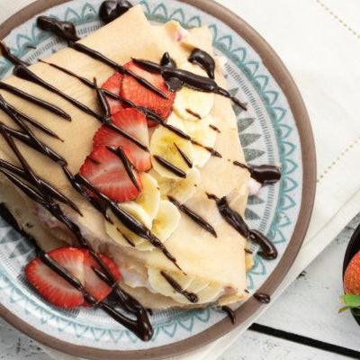Chocolate-Strawberry-Banana Crepes with Raspberry Sauce