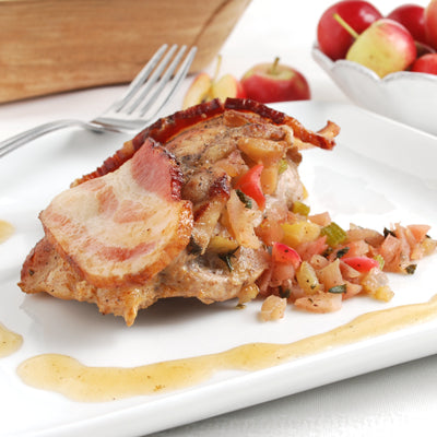 Organic Crimson Gold Apple Stuffed Seared Roasted Pork Chops