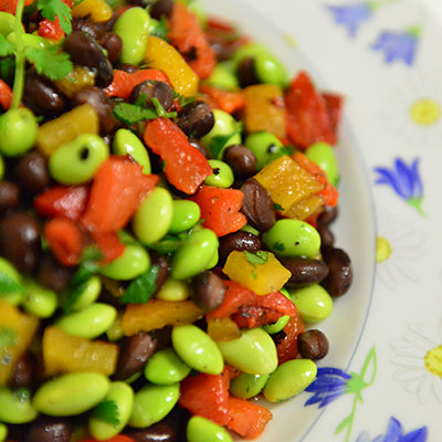 Bean, Artichoke and Beet Salad with Roasted Green and Red Chile Vinaigrette