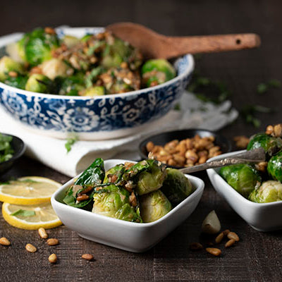 Brussels Sprouts with Garlic, Shallots and Pine Nuts