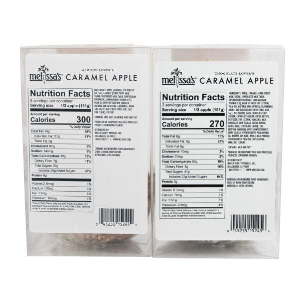 Melissa’s premium handcrafted caramel apples are an indulgent treat you and your family will love! Orchard-fresh Granny Smith apples are coated in creamy caramel and drizzled with the best-quality chocolates. This decadent dessert is available in two flavors, Chocolate Lover’s and Chocolate & Almond, and is a real treat for your sweet tooth.