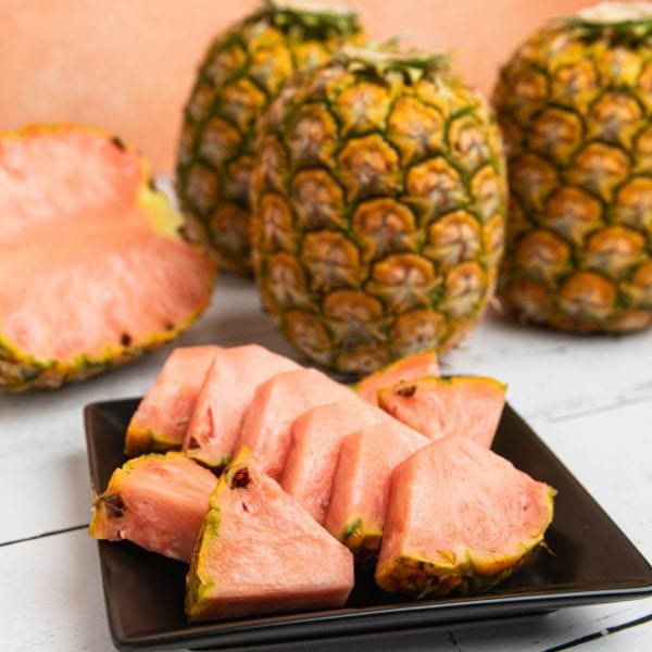 This petite pink-hued pineapple is absolutely adorable! Imagine it as the centerpiece of a tropical fruit platter or as an edible decoration for a baby shower or wedding. Less acidic than other pineapples, Pinkglow® features an addictive cotton candy aroma and floral sweetness that lingers on your tastebuds. It tastes like how a vacation feels!