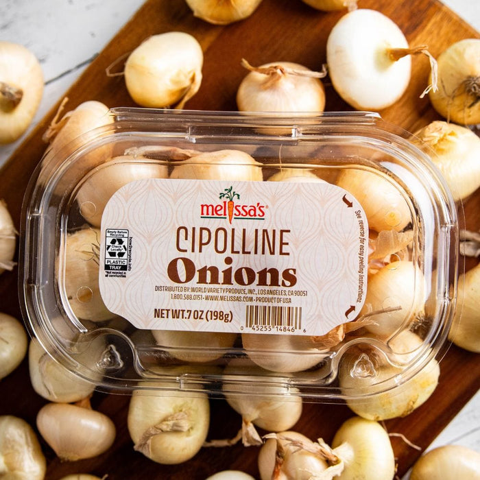 Melissa’s Cipolline Onions are delicious in any dish where extra flavor is needed. Sure to be one of the sweetest onions you will taste, try this onion variety barbecued on skewers, with chicken, beef, or lamb, or use in soups, stews, and casseroles. Cipolline Onions are also a favorite when added to fresh salads, vinaigrettes, cooked sauces, chutneys, or pickled for cocktails and grazing boards.