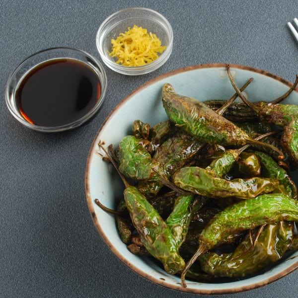 Shishito Peppers are traditionally served in Japanese cuisine roasted and tossed with sesame oil and a dash of soy sauce. Simple, elegant and completely addictive. Recreate this experience at home by simply roasting in the oven or a sauté pan for a few minutes, then tossing with the Asian condiments and quickly serving with your choice of beverage. A delicious snack that you can feel good about.