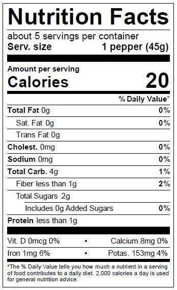 Choose peppers that are bright green with no red tinge. Fresh produce should be refrigerated to maximize shelf life.