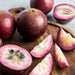 Rare and exotic Star Apples get their name for their unique star appearance when sliced in half. Despite its name, Star Apples are not apples; the fruit is related to mamey sapote, and features a jelly-like texture and irresistible milky white juice that tastes like applesauce with hints of lychee, blueberries and grapes.