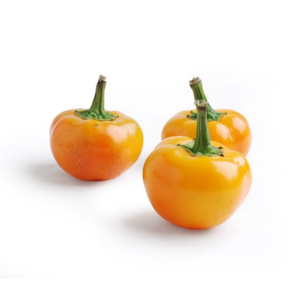 First discovered growing wild in Africa, the tiny Goldew Pepper is bursting with a sweet, slightly tangy, flavor that is quite powerful for its size. The brilliant gold color and almost perfect round shape make it the perfect one-bite appetizer stuffed with goat cheese or Brie. Add a splash of color salads, pickled or as a tasty pizza topping. Product of USA.