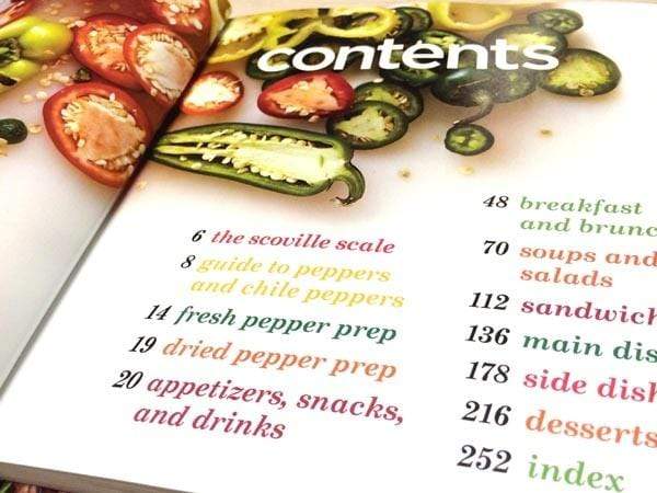 The book acts as a primer of all varieties of peppers, both fresh and dried, and includes images of all varieties, seasonality and a scoville chart heat rating.