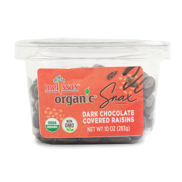 Sweet, chewy raisins cloaked in rich dark chocolate? Yes, please. Melissa’s Organic Snax™ Dark Chocolate Covered Raisins are a nostalgic nod with a grown-up twist—made with organic ingredients and just the right balance of fruity and chocolaty. Perfect for lunchboxes, glove compartments, or the snack jar on your counter that somehow empties too fast.