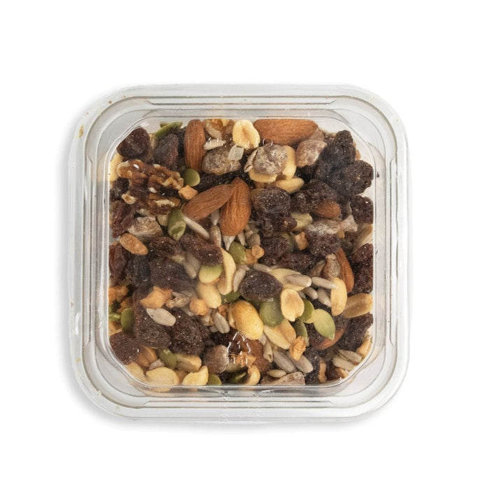 Ingredients: Raisins* (Raisins*, Sunflower Oil*), Peanuts*, Sunflower Seeds*, Almonds*, Dates* (Dates, Oat Flour*), Pumpkin Seeds*, Walnuts*, Apples*.