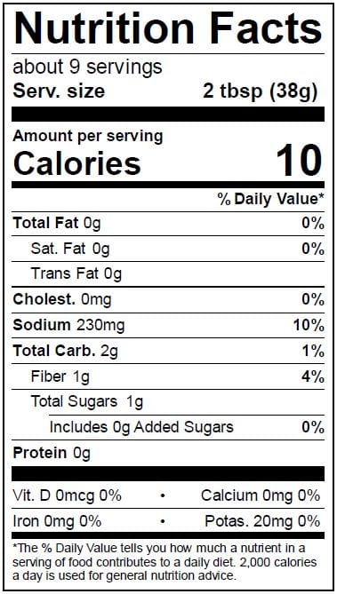 Produced on equipment that also processes products containing egg, milk, sesame, soy, sulfites, tree nuts, wheat and mustard.