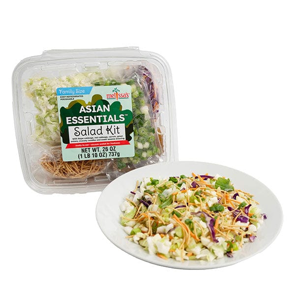 Melissa’s family-size Asian Essentials™ Salad Kit offers a convenient way for busy parents to provide a delicious serving of restaurant quality, prewashed vegetables without the time-consuming preparation and waste. Each kit comes with all the ingredients needed to make a complete salad inspired by Asian components such as Napa cabbage, crunchy noodles and sweet sesame dressing that are tossed with red cabbage, carrots and green onions. Open, mix and serve right out of a convenient 24 oz. resealable tub to insure the freshness of a second serving.