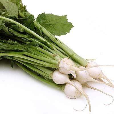 While most turnips really need to be cooked, this variety is delicious raw. Also marketed as the hakurei or Japanese turnip, these golf ball sized tubers have a sweet, mild flavor with a thin skin that does not need peeling—just a good scrubbing. Sliced baby turnips make a crunchy sweet addition to any green salad; they are also wonderful simply sautéed in butter and white wine. Not your ordinary turnip!