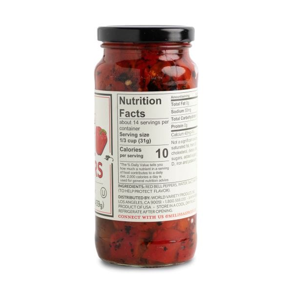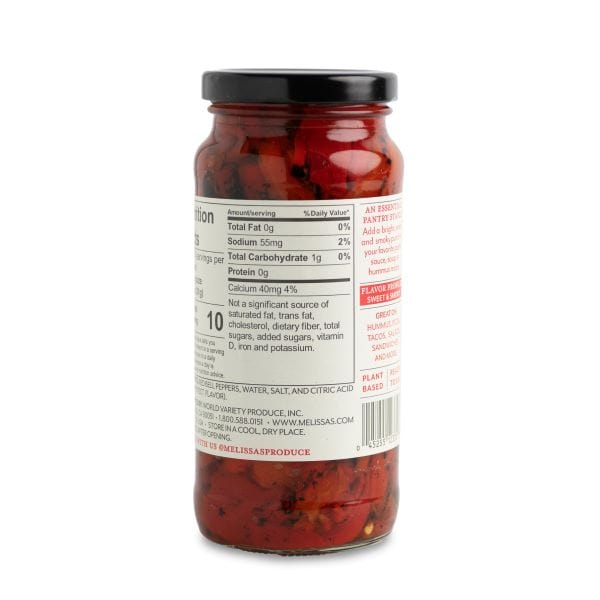 Melissa’s Fire Roasted Sweet Red Bell Peppers are so convenient and easy to use. Sweet bell peppers are perfect for stews, casseroles, soups, salads, pasta, sandwiches or wraps. Sweet Red Bell Peppers are low in calories. They are ready-to-use right out of the jar. Try some diced into your favorite salads.