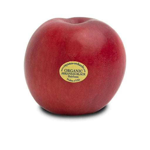 These apples are a tasty heirloom variety that was first grown in Arkansas by an early settler in the 1840’s. They originated from a Winesap seedling. The apple is prized for having a pleasantly tart flavor, crisp texture and long-term storage characteristics. In fact, they are harvested when dark red, the fruit’s skin turns almost black when stored for any length of time.