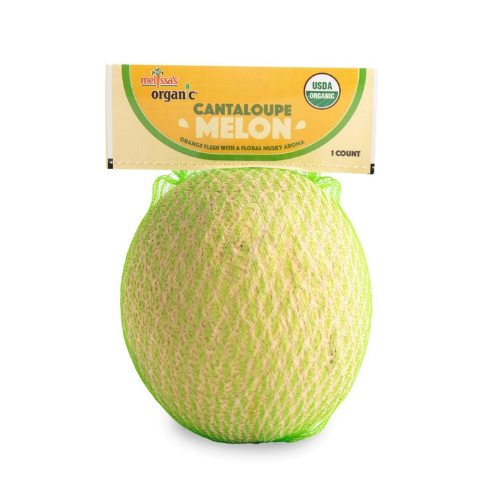 Buying and storing: Choose those that feel heavy for their size and are free of bruises or cracks. Melissa's Organic Cantaloupes are fragrant when ripe, and blossom end will give slightly to gentle pressure. If unripe, ripen at room temperature (uncut) up to four days. Once cut, refrigerate in an airtight container two to three days.