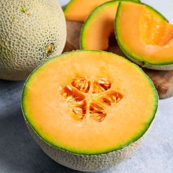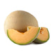 This melon is well known to most and can be quickly identified by its roughly netted, green skin. Cut into it, and you'll discover a sticky orange flesh with a floral musky aroma. This fruit has high water content, making them an excellent resource for hydration on hot days. Not only are these melons tasty by themselves, but when paired with savory counterparts and sweet complements, their flavor is taken to the next level.