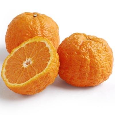 A seedless, sweet tangerine named after its bright orange, slightly bumpy rind. This hybrid is a cross between two noncommercial tangerine varieties: the Wilking and Kincy, by the University of California at Riverside. The Gold Nugget™ is a great juicer, averaging a 50% juice content. The fruit itself is a deep orange color with a moderately fine texture.