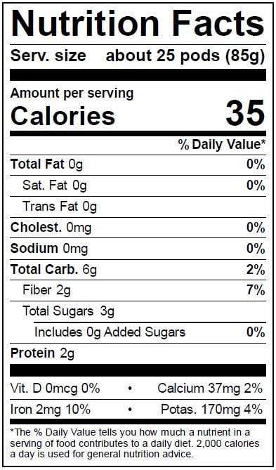 These edible pod peas are sweet and can be enjoyed raw or cooked by boiling, microwaving, steaming or stir-frying, then topping with butter or soy sauce. Melissa's Organic Sugar Snap Peas are entirely edible.