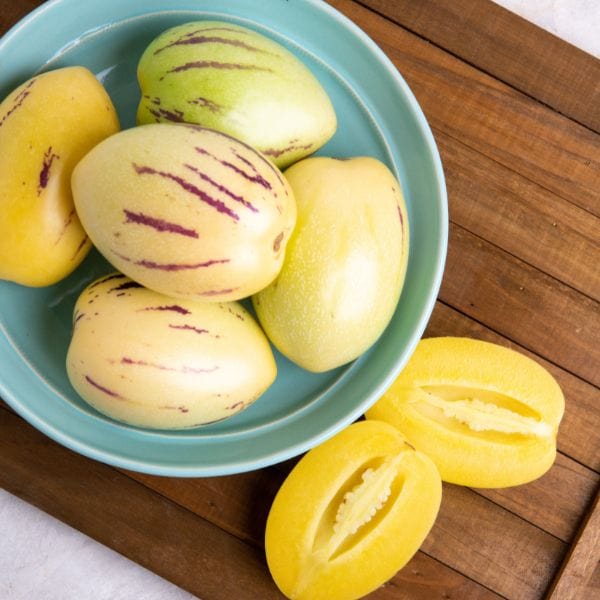 Pepinos are often enjoyed in fruit or spinach salads or simply cut in half and served individually, topped with a sprinkling of fresh lemon or lime juice and chile powder.