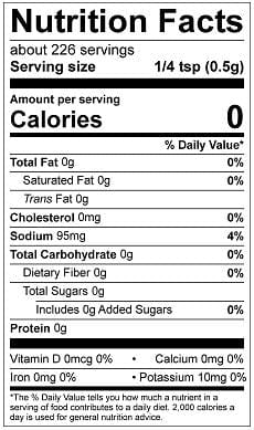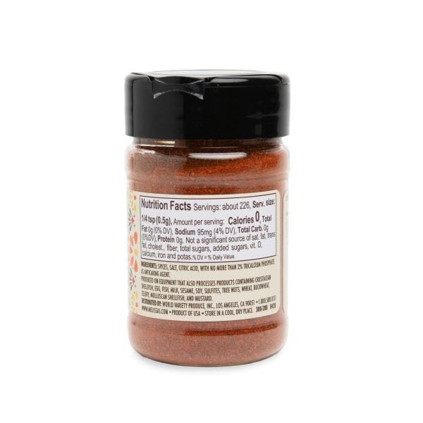 Ingredients: Spices, Salt, Citric Acid, with no more than 2% Tricalcium Phosphate as Anticaking Agent.