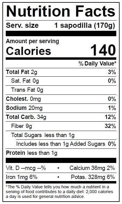 This exotic tropical fruit, also marketed as Sapote, is about the size of a large kiwi with the same texture and skin color, but without the fuzz. The interior fruit is a light tan color when ripe and extremely sweet.